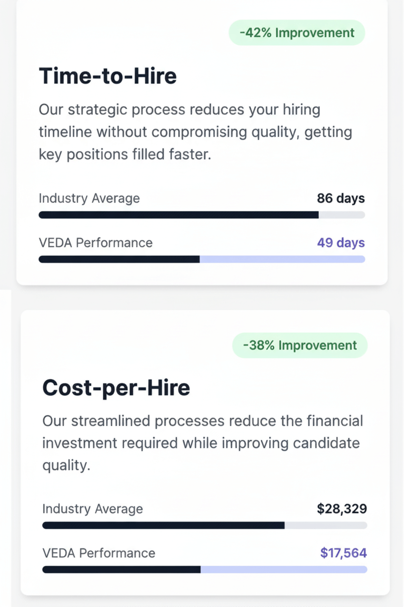 Our Founder-led, execution-focused approach brings precision and accountability, enabling high-performance teams aligned with your vision.